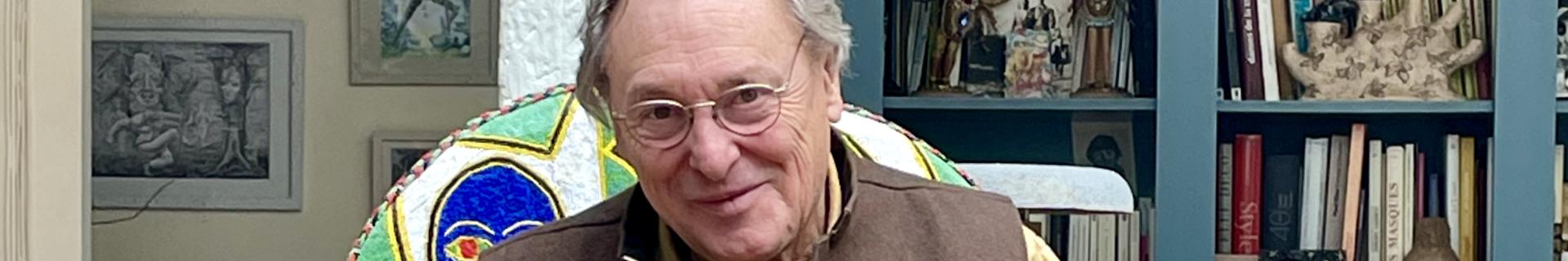 Une fois n’est pas coutume, nous sortons du studio pour aller à la rencontre de Garouste qui nous reçoit dans son atelier parisien, caché au fond d’une cour du XIᵉ arrondissement. Le peintre occupe actuellement le devant de la scène culturelle avec une grande rétrospective au Centre Pompidou. Nous prenons place sous la verrière, au milieu des coussins et des plantes vertes. La conversation peut commencer pour parler de son enfance, de la vie à la campagne, des classiques qui l’inspirent, des Indiens qui peuplent notre inconscient et des trésors de la langue hébraïque. Gérard Garouste est membre de l’Académie des beaux-arts depuis 2017.