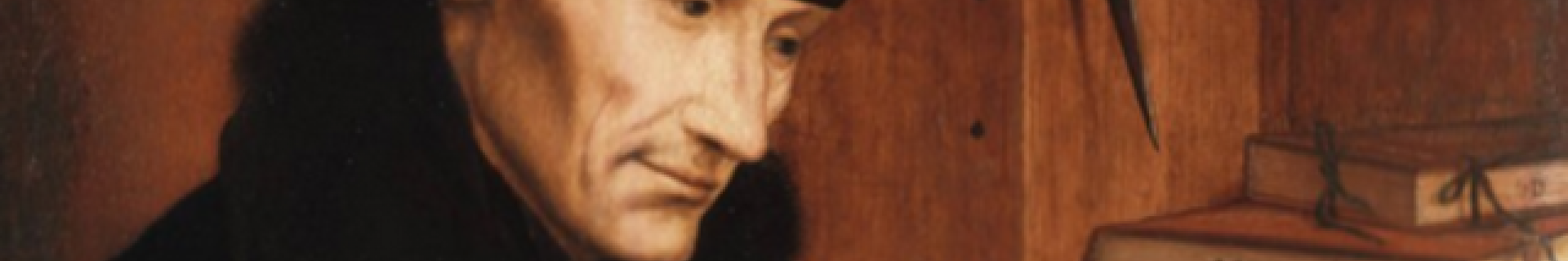 Erasme fut un enfant sans nom, fils d’un prêtre et de la fille d’un médecin de Zevenbergen, du nom de Geert qui le laissèrent orphelin à l’âge de quatorze ans. On ignore d’ailleurs la date exacte de sa naissance, en 1467, en 1466 ou deux plus tard, peut-être l’année suivante. Il était né à Rotterdam, alors une bourgade essentiellement habitée par des pêcheurs, il allait y accoler son nom fabriqué par lui en jouant sur les mots. Fort de sa jeune connaissance du grec et du latin, le jeune homme, âgé de dix-sept ans, élève des Frères de la congrégation de la Vie Commune, traduisit en latin Geert qui signifie en hollandais « le désiré », en Desiderius, y ajouta Erasmus, « aimé » en grec et Roterodamus pour signifier ses origines. Pour nous, il est devenu Erasme tout court et pour le distinguer, le « prince des humanistes ».