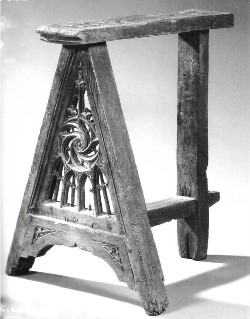 Les tréteaux n’étaient pas de simples bouts de bois sans apprêt. La svv Aguttes en a vendu une paire au décor gothique flamboyant. « Les deux façades adoptent la même disposition, explique l’expert Bruno Perrier. Sur la base en accolade s’élève un triangle découpé à jour. Un registre de lancettes géminées porte une rose centrale : soufflets et mouchettes s’y disposent en hélice autour d’une petite fleurette. Des fleurons la surmontent, dans un cadre de lancettes. Sur les parties pleines, des motifs feuillagés trilobés ornent les écoinçons. Cependant les deux tréteaux ne sont pas identiques. Le gothique n’a pas le goût de la symétrie. Il inféode certes le décor à la structure, mais laisse libre l’exécution du modèle. Art virtuose, il articule en courbes et contrecourbes les lancettes, soufflets, mouchettes, roses et fleurons, tous ornements dont la forme et la composition engendrent le mouvement. » Ces deux pièces, (: H. : 86 cm – L. : 60 cm P. : 80 cm) en bois de chêne, datés du XV° siècle, plus un plateau rapporté, ont été adjugés 29.040 € le mercredi 22 décembre 2010, à Drouot. Si le plateau est ancien, l’assemblage est ultérieur. L’ensemble restitue au meuble son apparence et permet de mieux comprendre sa principale fonction de table à manger.