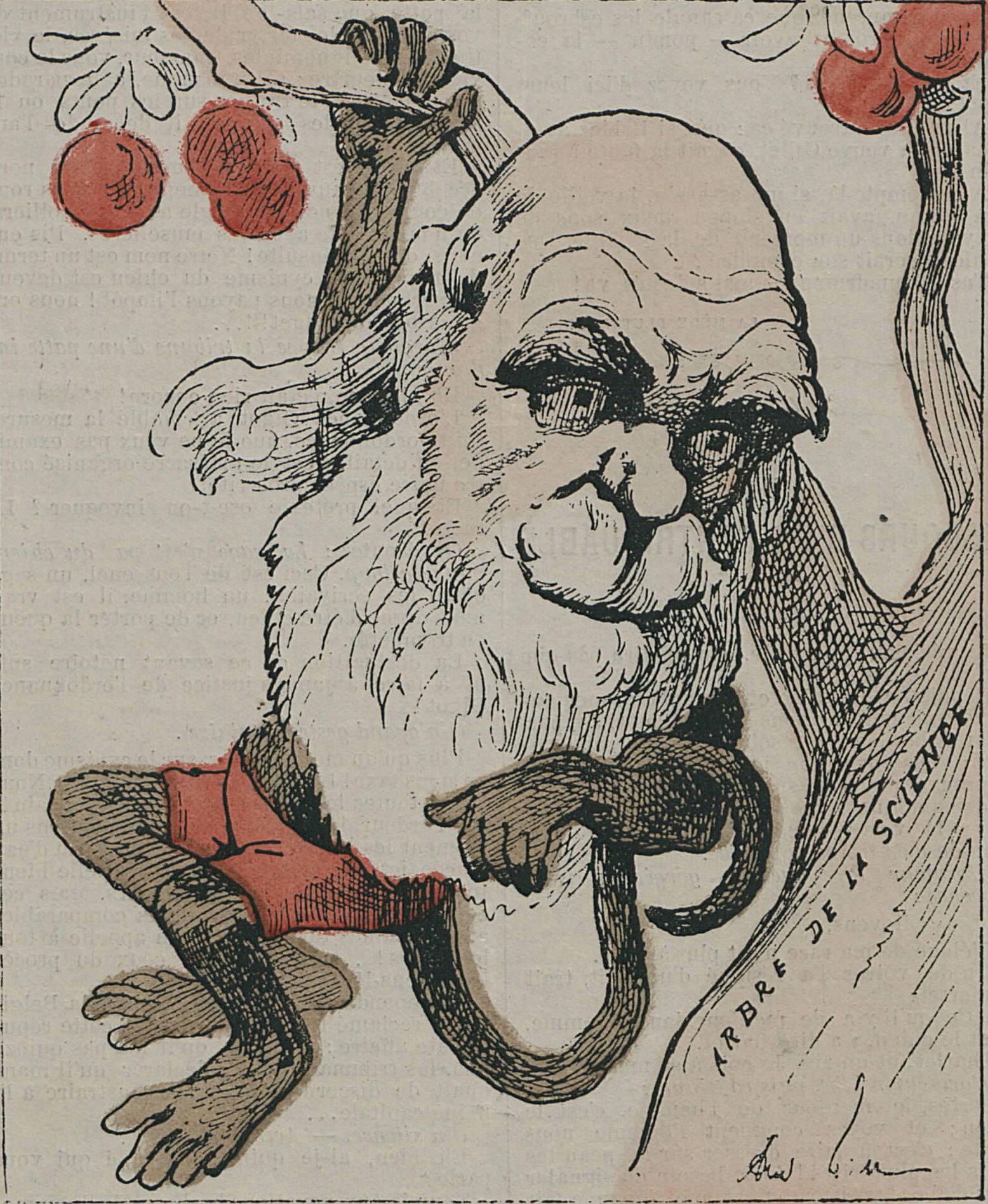 La phrase choc fera date : le lendemain, Darwin est caricaturé en singe dans les journaux.