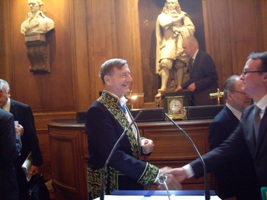 C'est le président en exercice pour l'année 2011, Jean Baechler, qui a invité son confrère Pierre Delvolvé à lire la notice sur la vie et les travaux de son prédécesseur Jean Foyer. Pierre Delvolvé a donc été accueilli, dans la grande salle des séances des académies, par une brève allocution de Jean Baechler que vous entendrez au tout début de cette retransmission.