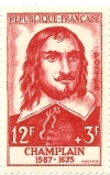 Samuel Champlain (1567-1635) vient de Brouage dont on voit les remparts sur un timbre de 1 F ; il est amené par Dugua de Mons et accepte de rester sur place, se bat contre les Iroquois soutenu par les Anglais et crée Québec en 1608.