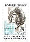 Paul de Chomedey, sieur de Maisonneuve (1612-1676) crée la ville de Montréal en 1642. Il est timbrifié en 1971.