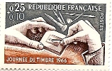 On a déjà évoqué la contrainte du graveur : il ne doit pas se tromper car aucune retouche n’est possible. L’action de ses deux mains a été bien montrée lors de la journée du timbre en 1966. Chaque année, à l’occasion du congrès de la Fédération des Associations philatéliques, la Poste émet un timbre célébrant la ville qui reçoit : mais cette fois elle l'avait consacré au geste auguste du graveur.