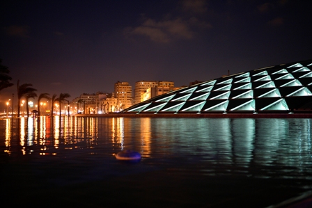 Alexandrie est sans doute au Caire ce que St Germain des Prés est à Paris : un lieu de rencontre interculturel, un endroit nourri de traditions et de nouveautés en tous domaines. Ne pas oublier la bibliothèque alexandrine, à l'architecture audacieuse, largement financée par la France comme un cercle enfoncé près du port, à peu près à l'endroit de celle, légendaire, qui brûla deux fois. Mais elle évoque plutôt avec son air penché, un livre qu'on aurait mal refermé et qui délivre de nouveau tout son savoir. Lieu précieux, vitrine éblouissante, elle est riche déjà de plus de 700.000 volumes, est prévue pour en accueillir plusieurs millions, ambitionnant de devenir la bibliothèque la plus riche en savoir de tout le monde arabe.