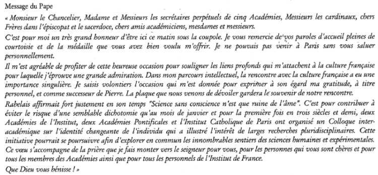 http://www.institut-de-france.fr/minisite/visite_pape/1210_message_du_pape.html